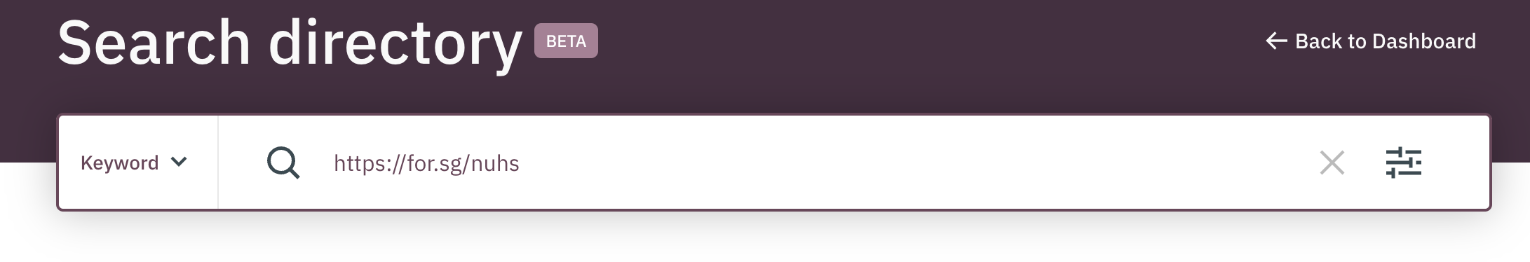 You can either key in the email address of the officer (<officer@ihis.sg>) or the email domain (for example @ihis.sg) if you want to see how many links are owned by your institution.
